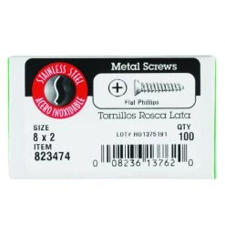 Hillman No. 8 X 2 in. L Phillips Flat Head Sheet Metal Screws 100 pk