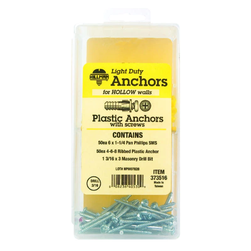 Ribbed plastic anchors work with various diameter sheet metal screws and are ideal for anchoring in concrete, brick or wallboard. The anchor is corrosion resistant. A pre-drilled hole is required. Recommended for quick, easy fastening of fixtures in a variety of light duty applications. *