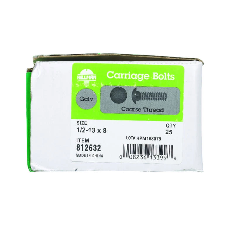 Carriage bolts are designed to fasten a wooden face to either a wood or metal frame. Its flat head is designed to eliminate the need for a washer and provide a semi-flush finish to applications. The square underside of the head is self-locking to eliminate spinning and the need for a driving tool. The galvanized finish provides optimal rust prevention but can be chalky in appearance. *