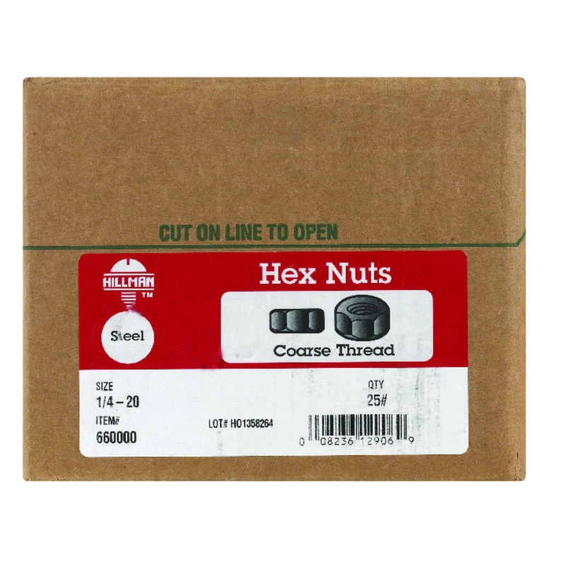 Hex nuts are to be used with machine bolts to adhere facing materials to prevent tension and shear movement. Specifically in wood to wood, wood to metal, or metal to metal applications. Zinc grade 2 steel hex nuts are recommended for most general uses and