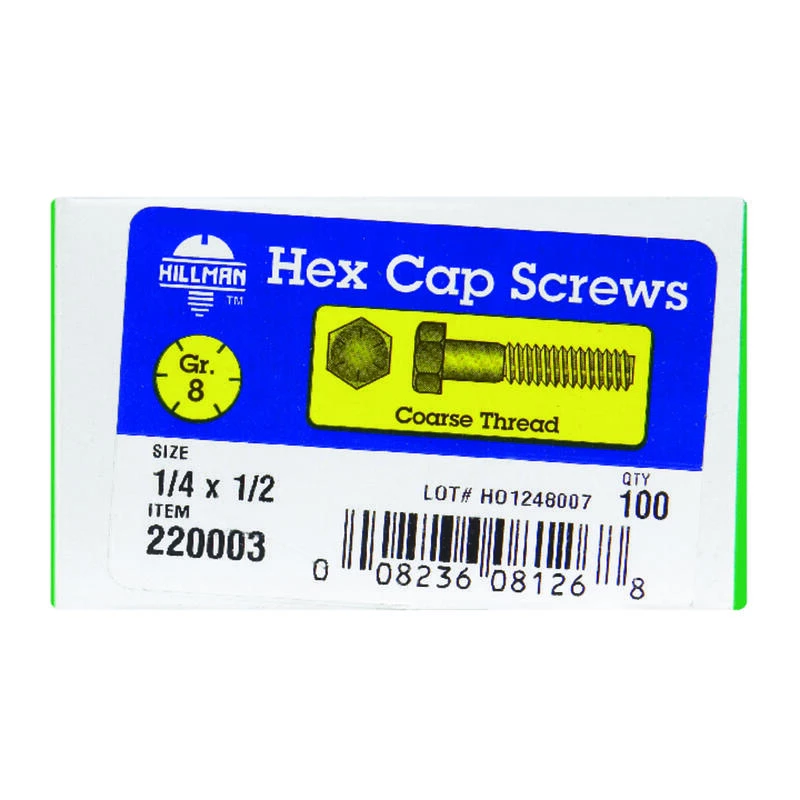 Hillman 1/4 in. D X 1/2 in. L Heat Treated Steel Hex Head Cap Screw 100 pk