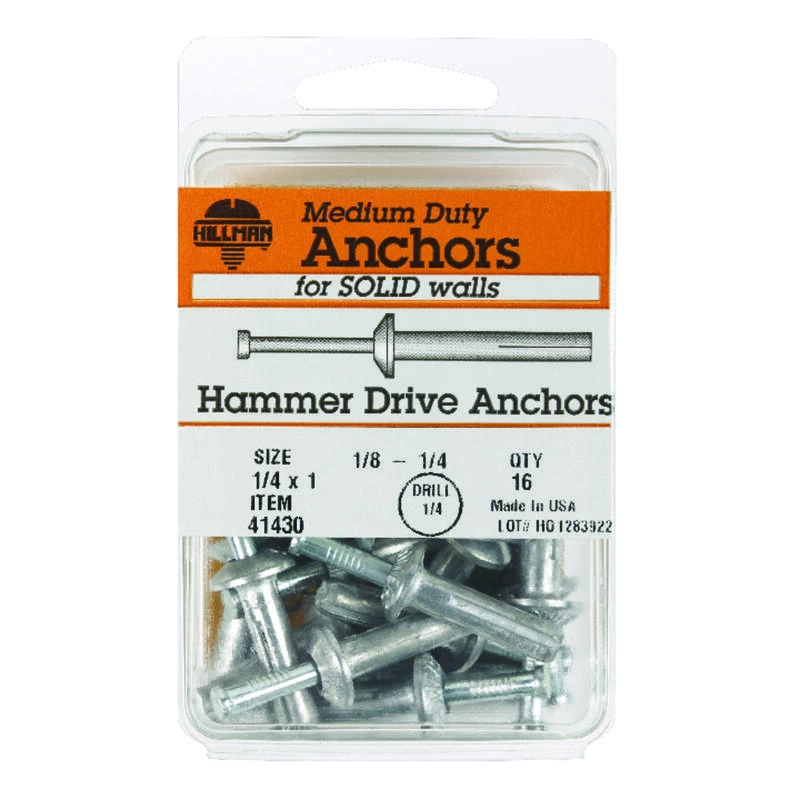 Hammer drive anchors are used for light duty fastening. They are best suited for dry, or indoor environments. Do not use for overhead installation projects. They can be used in base materials such as brick, concrete, and concrete block. Installations are permanent and cannot be removed without destroying. *