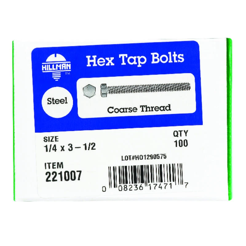 Hillman 1/4 in. D X 3-1/2 in. L Zinc Plated Steel Hex Tap Bolt 100 pk