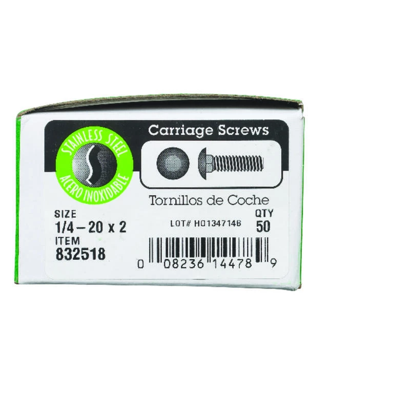 Carriage bolts are designed to fasten a wooden face to either a wood or metal frame. Its flat head is designed to eliminate the need for a washer and provide a semi-flush finish to applications. The square underside of the head is self-locking to eliminate spinning and the need for a driving tool. Stainless steel finish provides superior rust prevention, terrific for all outdoor applications. *