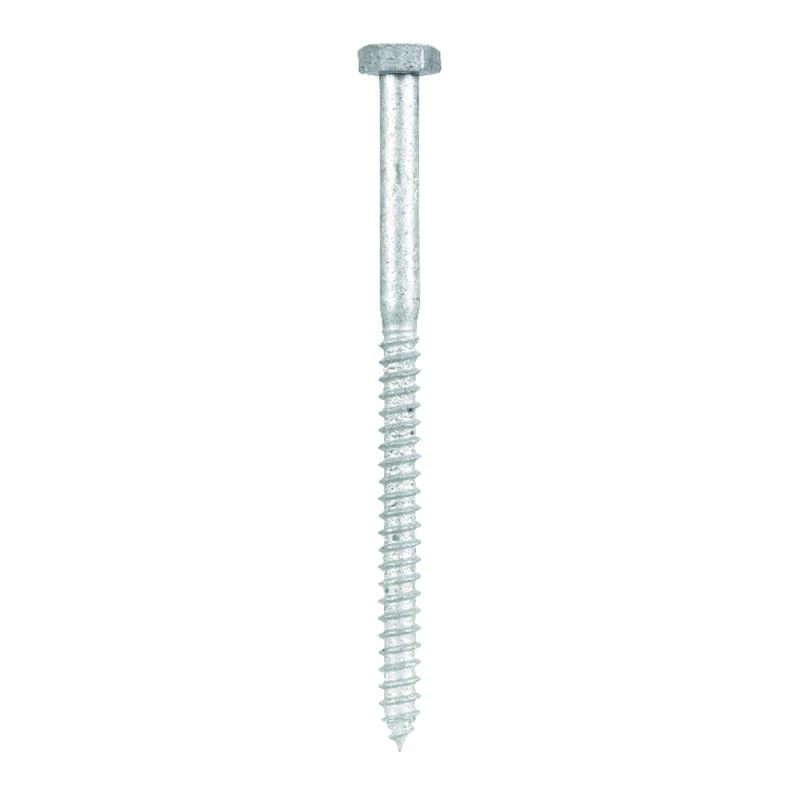 Galvanized hex lag screws provide superior weather and corrosion protection, making it ideal for outdoor projects. Common applications include retaining walls, deck frames and outdoor play equipment. This galvanized hex lag screw has coarse threads with a hexagonal drive and requires clearance above the fastener. The screw has a galvanized finish which contains more corrosion resistant properties, allowing it to last longer than those made with traditional steel.