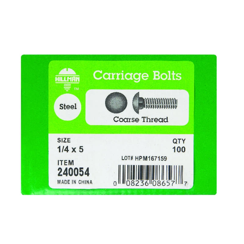 Hillman 1/4 in. X 5 in. L Zinc-Plated Steel Carriage Bolt 100 pk