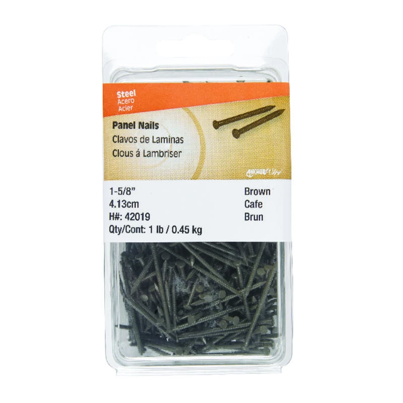 For a clean, finished look when hanging paneling or other indoor materials, use Hillman Painted Panel Nails. These nails are made of steel for durability and feature a durable coated finish painted to blends into your paneling project. *