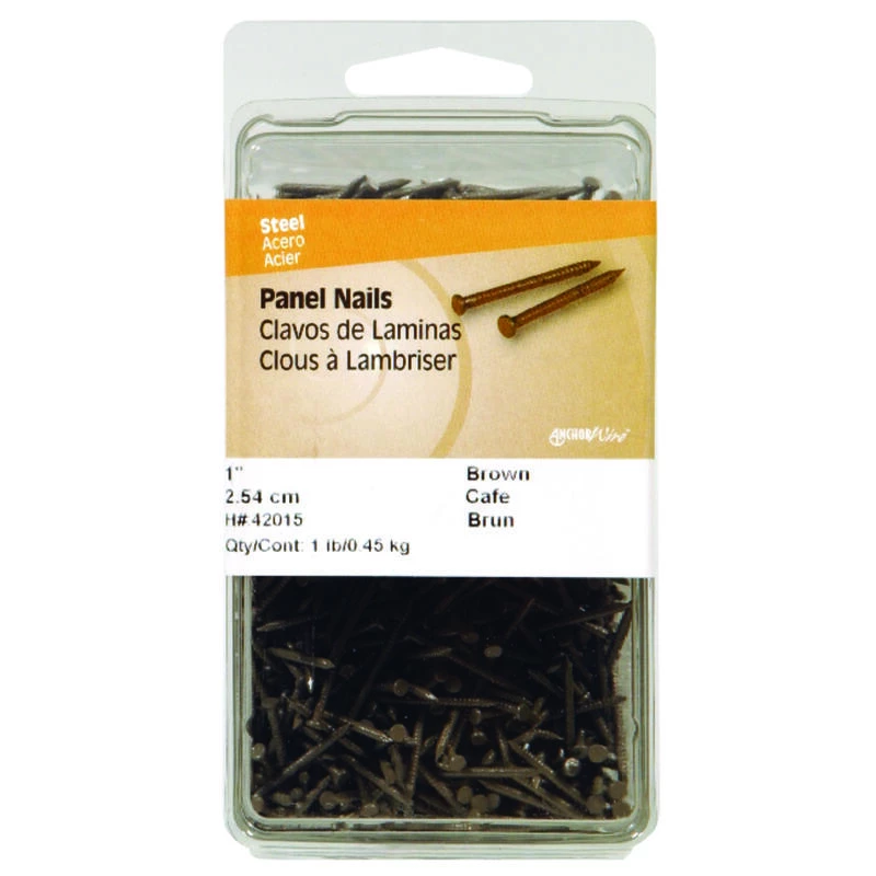 For a clean, finished look when hanging paneling or other indoor materials, use Hillman Painted Panel Nails. These nails are made of steel for durability and feature a durable coated finish painted to blends into your paneling project. *