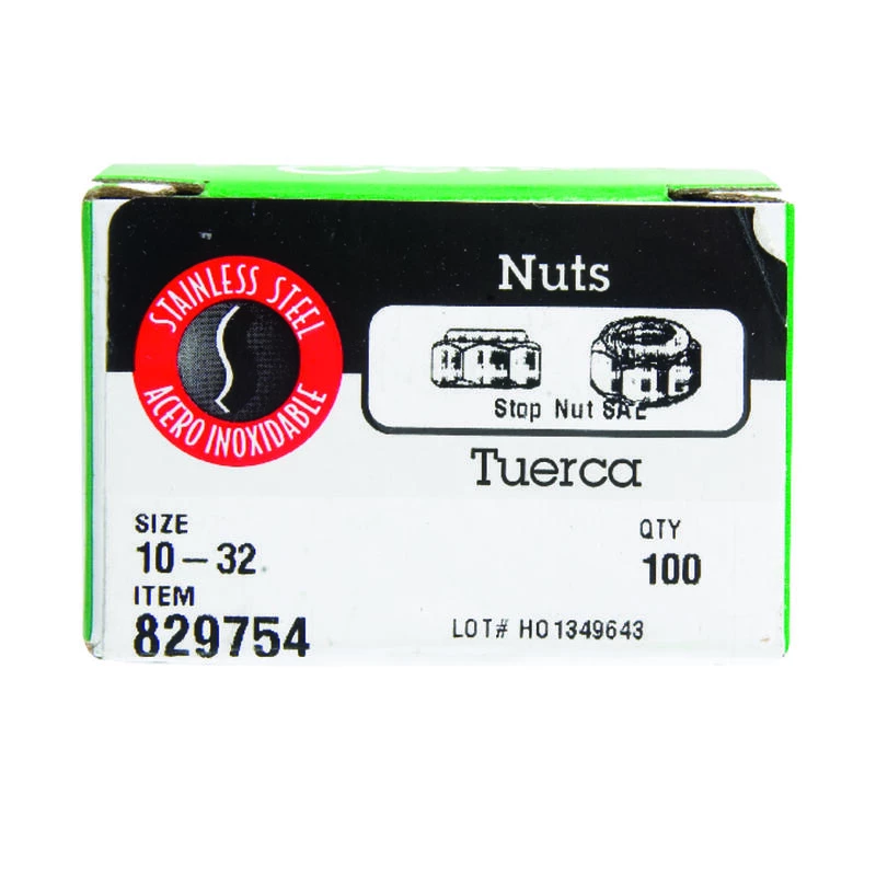 These nylon insert stop & lock nuts are ideal to securely fasten a bolt when connecting materials. Use these hexagonal nuts with bolts and washers of the same material, finish, and grade. The nylon ring inside the nut creates rotational resistance when displaced by a mating male threaded fastener, thus preventing loosening. The nylon insert also helps resist vibration and adds extra corrosion resistance.