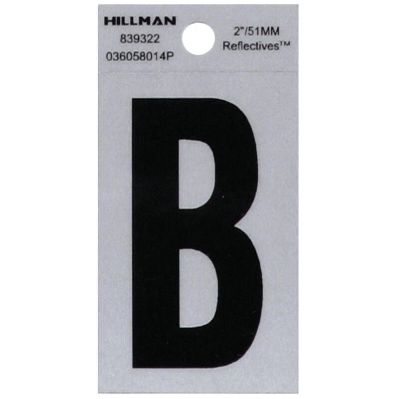Simple and classic, this Hillman adhesive letter B black and silver reflective (2 in.) is perfect for use on a mailbox or your home. The sturdy construction stands up to weather. These house numbers are a great way to help make your address more visible to visitors and emergency workers alike.