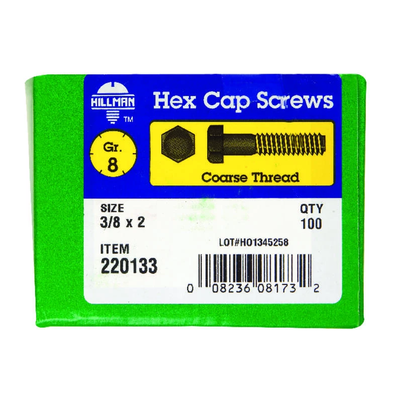 Hillman 3/8 in. D X 2 in. L Heat Treated Steel Hex Head Cap Screw 100 pk