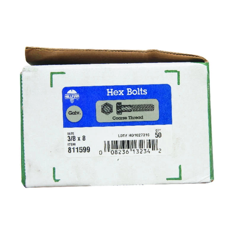Hex bolts are machine bolts that have been designed to adhere facing materials to prevent shear movement; specifically for use in wood to wood, wood to metal, or metal to metal applications. Galvanized, grade 2 hex bolts are recommended for most general uses and are corrosion resistant. Be sure to pre-drill any holes and to use washers and nuts that are a similar grade and finish. *