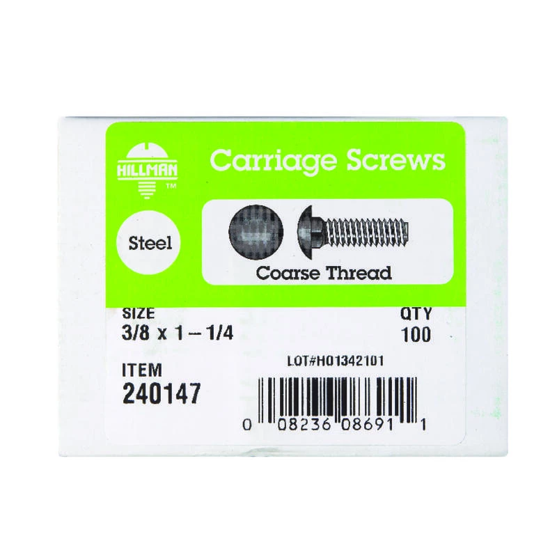 Hillman 3/8 in. X 1-1/4 in. L Zinc-Plated Steel Carriage Bolt 100 pk