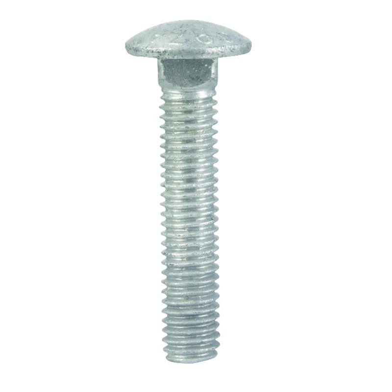 Carriage bolts are designed to fasten a wooden face to either a wood or metal frame. Its flat head is designed to eliminate the need for a washer and provide a semi-flush finish to applications. The square underside of the head is self-locking to eliminate spinning and the need for a driving tool. The galvanized finish provides optimal rust prevention but can be chalky in appearance. *