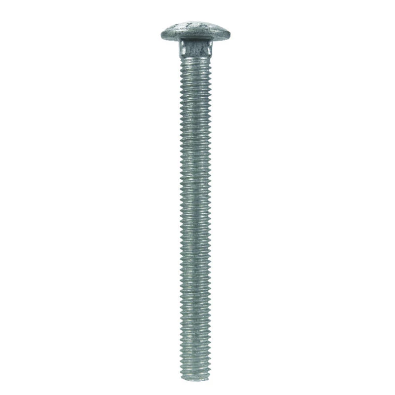 Carriage bolts are designed to fasten a wooden face to either a wood or metal frame. Its flat head is designed to eliminate the need for a washer and provide a semi-flush finish to applications. The square underside of the head is self-locking to eliminate spinning and the need for a driving tool. The galvanized finish provides optimal rust prevention but can be chalky in appearance. *