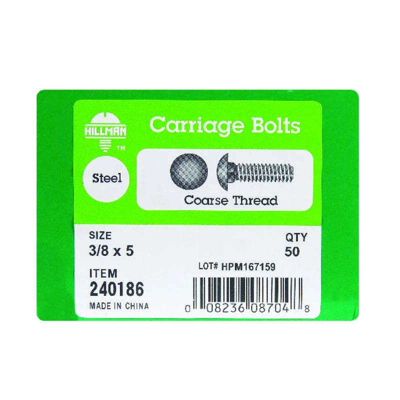 Carriage bolts are designed to fasten a wooden face to either a wood or metal frame. Its flat head is designed to eliminate the need for a washer and provide a semi-flush finish to applications. The square underside of the head is self-locking to eliminate spinning and the need for a driving tool. The zinc plating is rust resistant and provides a beautiful, consistent finish, but, may not work for all exterior projects. *