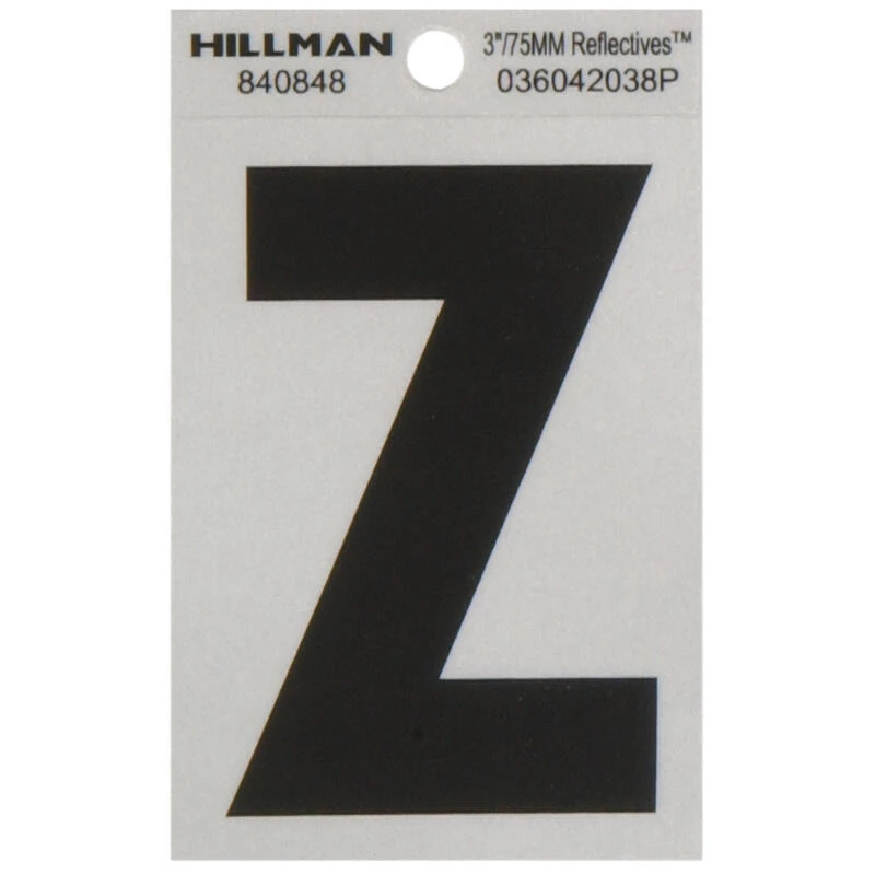Simple and classic, this Hillman adhesive letter Z black and silver reflective (3″) is perfect for use on a mailbox or your home. The sturdy construction stands up to weather. These letters are a great way to help make your address more visible to visitors and emergency workers alike.