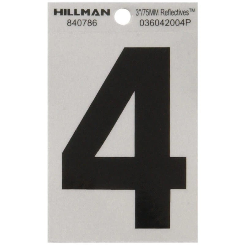 Simple and classic, this Hillman adhesive house number 4 black and silver (3 in.) is perfect for use on a mailbox or your home. The sturdy construction stands up to weather. These house numbers are a great way to help make your address more visible to visitors and emergency workers alike.