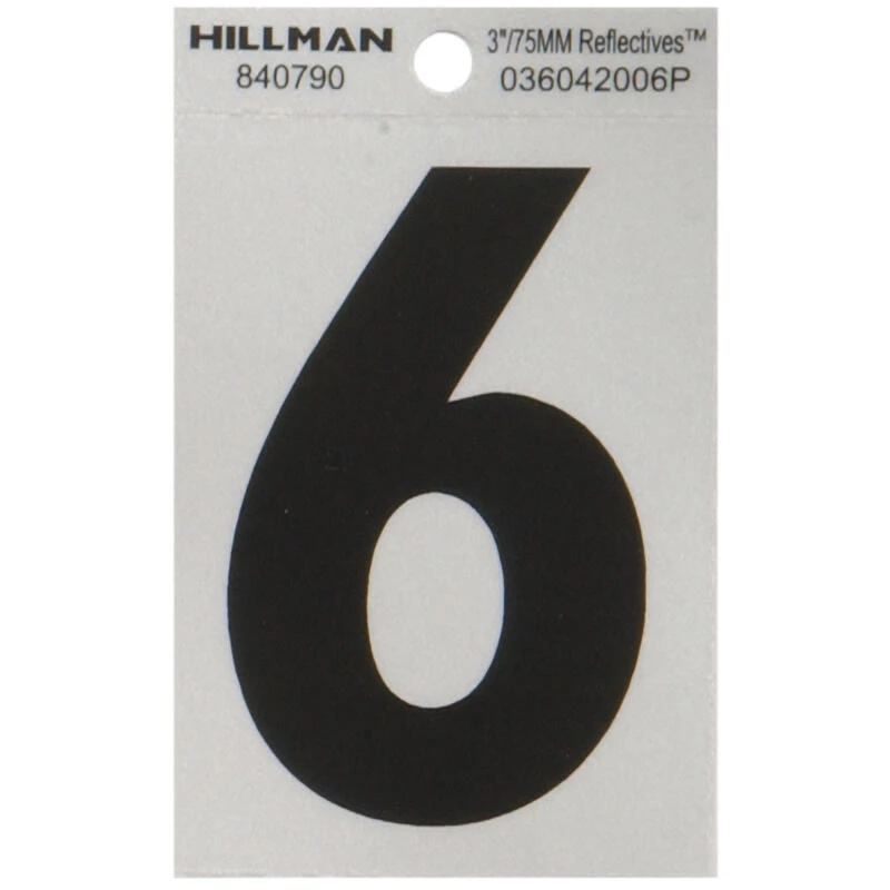 Simple and classic, this Hillman nail-on house number 6 reflective (3 in.) is perfect for use on a mailbox or your home. The sturdy construction stands up to weather. These house numbers are a great way to help make your address more visible to visitors and emergency workers alike.