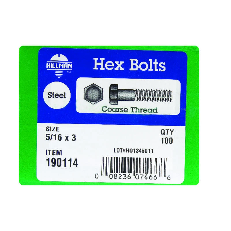 Hillman 5/16 in. D X 3 in. L Zinc Plated Steel Hex Bolt 100 pk