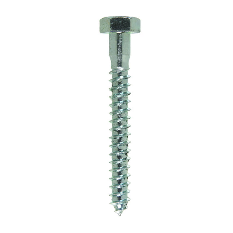 Zinc hex lag screws provide adequate corrosion and rust protection, making it a good choice for outdoor projects. Common applications include retaining walls, deck frames, and outdoor play equipment. This zinc hex lag screw has coarse threads designed for pre-drilled holes to prevent splitting or snapping, and requires minimal clearance above the fastener. It has a hexagonal drive for simple installation and controlled traction with a socket or wrench.