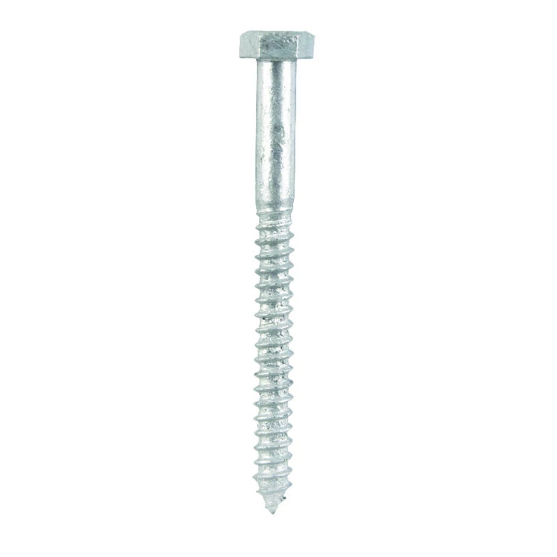 Galvanized hex lag screws provide superior weather and corrosion protection, making it ideal for outdoor projects. Common applications include retaining walls, deck frames and outdoor play equipment. This galvanized hex lag screw has coarse threads with a hexagonal drive and requires clearance above the fastener. The screw has a galvanized finish which contains more corrosion resistant properties, allowing it to last longer than those made with traditional steel.