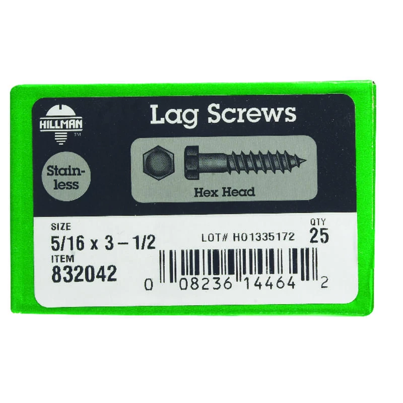 Stainless steel hex lag screws offer a higher level of corrosion resistance, and is great for any outdoor project. Common applications include retaining walls, deck frames, and outdoor play equipment. This screw has coarse threads with a hexagonal drive. Its stainless steel finish provides anti-corrosive properties and makes it slightly stronger than regular (un-hardened) steel bolts.