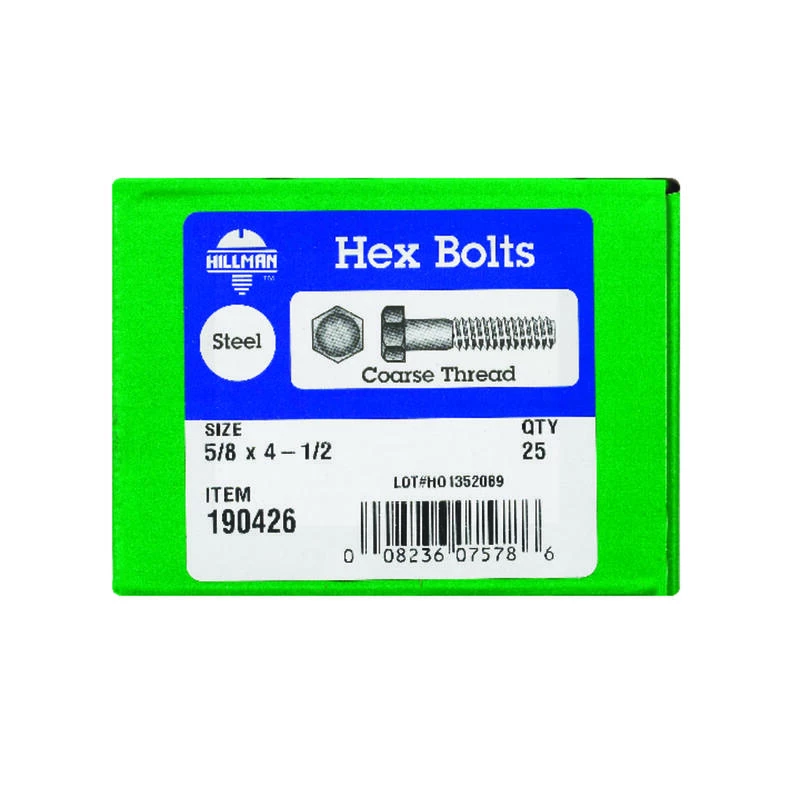 Hex bolts are machine bolts that have been designed to adhere facing materials to prevent shear movement; specifically for use in wood to wood, wood to metal, or metal to metal applications. Zinc, grade 2 hex bolts are recommended for most general uses and are corrosion resistant for typical use. Be sure to pre-drill any holes and to use washers and nuts that are a similar grade and finish. *