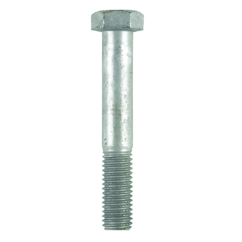 Hex bolts are machine bolts that have been designed to adhere facing materials to prevent shear movement; specifically for use in wood to wood, wood to metal, or metal to metal applications. Galvanized, grade 2 hex bolts are recommended for most general uses and are corrosion resistant. Be sure to pre-drill any holes and to use washers and nuts that are a similar grade and finish. *
