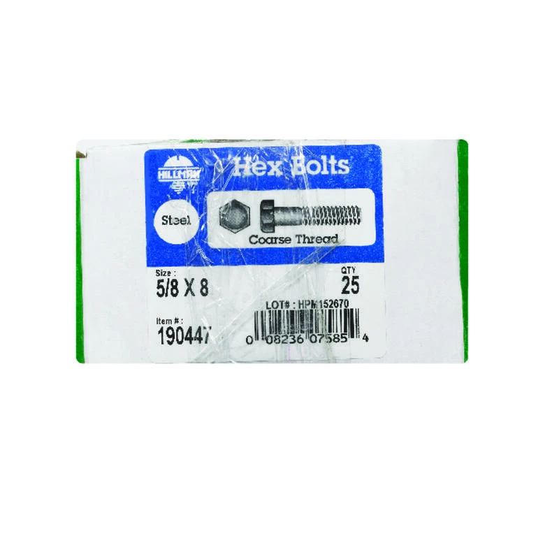 Hillman 5/8 in. D X 8 in. L Zinc Plated Steel Hex Bolt 25 pk