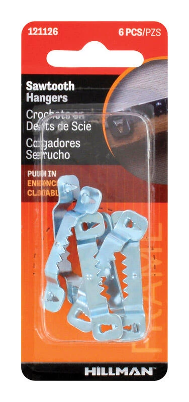 Don’t hassle with small hardware pieces anymore. Hillman’s zinc plated hangers are designed for easy installation. Simply, place in desired location and press. Great for wooden frames. Hangers are self-leveling. Available in small and large sizes. *