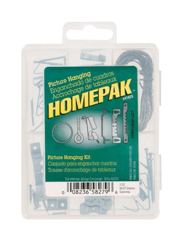 Hillman Picture Hanger Assortment Kit will ensure that your picture hanging needs are met. Whether there are multiple pictures, a variety of sizes, or you just want to keep a picture hanging kit on hand. This Kit is designed for easy storage in a craft room or utility closet. Simply store or hang this reseal-able Kit. Kits are available in small, medium, and large. All hangers are brass finished. *