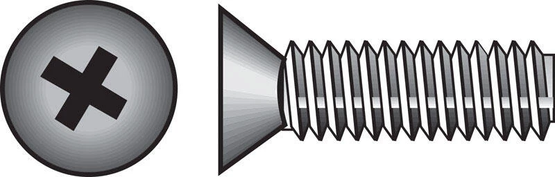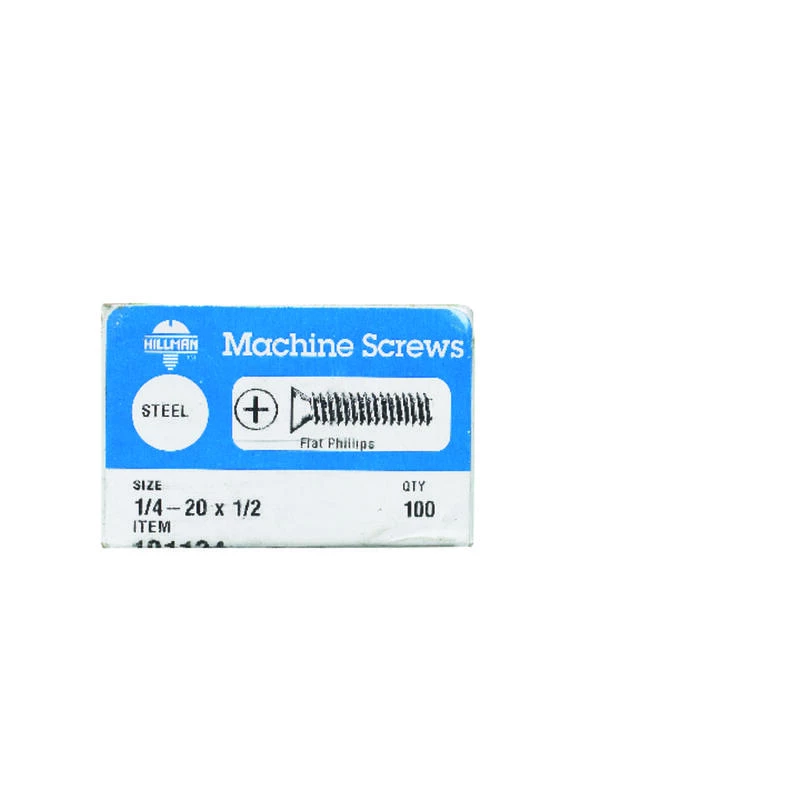 Zinc, flat-head, Phillips-drive machine screws have a machine-cut thread throughout the length of their shank. Fasten with a Phillips screwdriver to reduce risk of over-tightening and protect the screw and fastened material. If nuts are needed, use with nuts of the same finish and threading for proper fit. Use for any indoor or outdoor projects. 1/4″-20 coarse thread x 1/2″ length. *