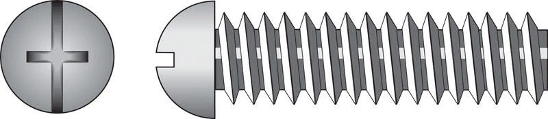 Zinc, round-head, combo-drive machine screws have a machine-cut thread throughout the length of their shank. Fasten with either a Phillips or slot screwdriver to reduce risk of over-tightening and protect the screw and fastened material. If nuts are needed, use with nuts of the same finish and threading for proper fit. Use for any indoor or outdoor projects. #10-24 coarse thread x 1-1/4″ length. *