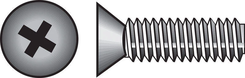 Zinc, flat-head, Phillips-drive machine screws have a machine-cut thread throughout the length of their shank. Fasten with a Phillips screwdriver to reduce risk of over-tightening and protect the screw and fastened material. If nuts are needed, use with nuts of the same finish and threading for proper fit. Use for any indoor or outdoor projects. #10-24 coarse thread x 1″ length. *