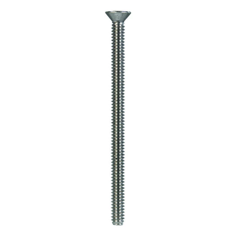 18-8 stainless steel, flat-head, Phillips-drive machine screws have a machine-cut thread throughout the length of their shank. Fasten with a Phillips screwdriver to reduce risk of over-tightening and protect the screw and fastened material. If nuts are needed, use with nuts of the same finish and threading for proper fit. Use for any indoor or outdoor projects. #10-24 coarse thread x 3″ length. *