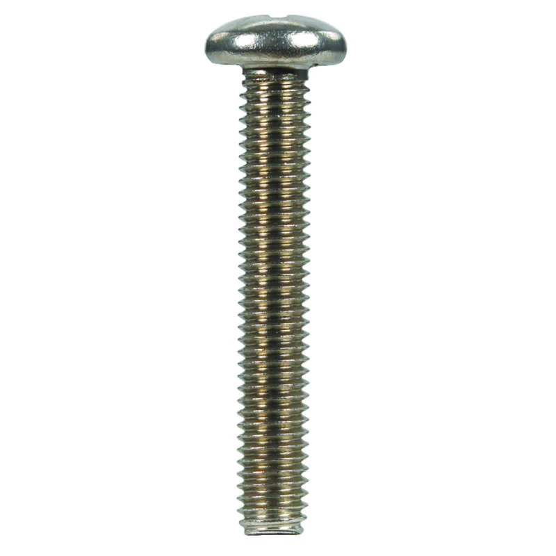18-8 stainless steel, flat-head, Phillips-drive machine screws have a machine-cut thread throughout the length of their shank. Fasten with a Phillips screwdriver to reduce risk of over-tightening and protect the screw and fastened material. If nuts are needed, use with nuts of the same finish and threading for proper fit. Use for any indoor or outdoor projects. #10-32 fine thread x 1-1/4″ length. *