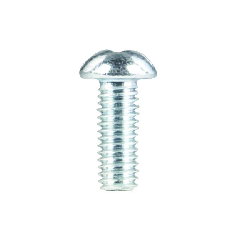 Zinc, round-head, combo-drive machine screws have a machine-cut thread throughout the length of their shank. Fasten with either a Phillips or slot screwdriver to reduce risk of over-tightening and protect the screw and fastened material. If nuts are needed, use with nuts of the same finish and threading for proper fit. Use for any indoor or outdoor projects. #10-32 fine thread x 1/2″ length. *