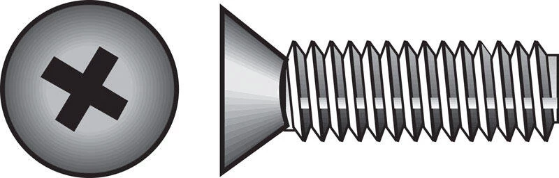 18-8 stainless steel, flat-head, Phillips-drive machine screws have a machine-cut thread throughout the length of their shank. Fasten with a Phillips screwdriver to reduce risk of over-tightening and protect the screw and fastened material. If nuts are needed, use with nuts of the same finish and threading for proper fit. Use for any indoor or outdoor projects. #10-32 fine thread x 1/2″ length. *
