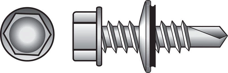 Self Drilling screws are specifically designed to fasten metal sheeting with out drilling and have self tapping threads to provide a stronger grip to your surface. These drill into the roof to remove material and have a neoprene washer provide a water tight seal. These screws have a ceramic finish that is corrosion resistant and recommended for use for treated woods. *