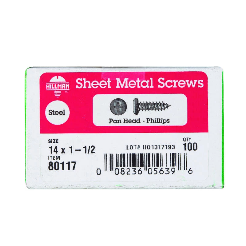 Hillman No. 14 X 1-1/2 in. L Phillips Pan Head Sheet Metal Screws 100 pk