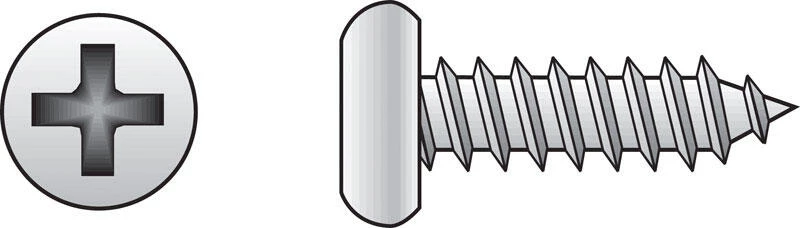 Sheet metal screws, or tapping screws, are highly versatile. Though they are designed to attach metal to metal, they’re also used to attach metal to wood, fiberglass, and plastic. Great for general repair around the house, their sharp threads draw materials together and ensure a secure hold. Sheet metal screws are fully threaded with a sharp point. A pre-drilled hole is required for installation. *