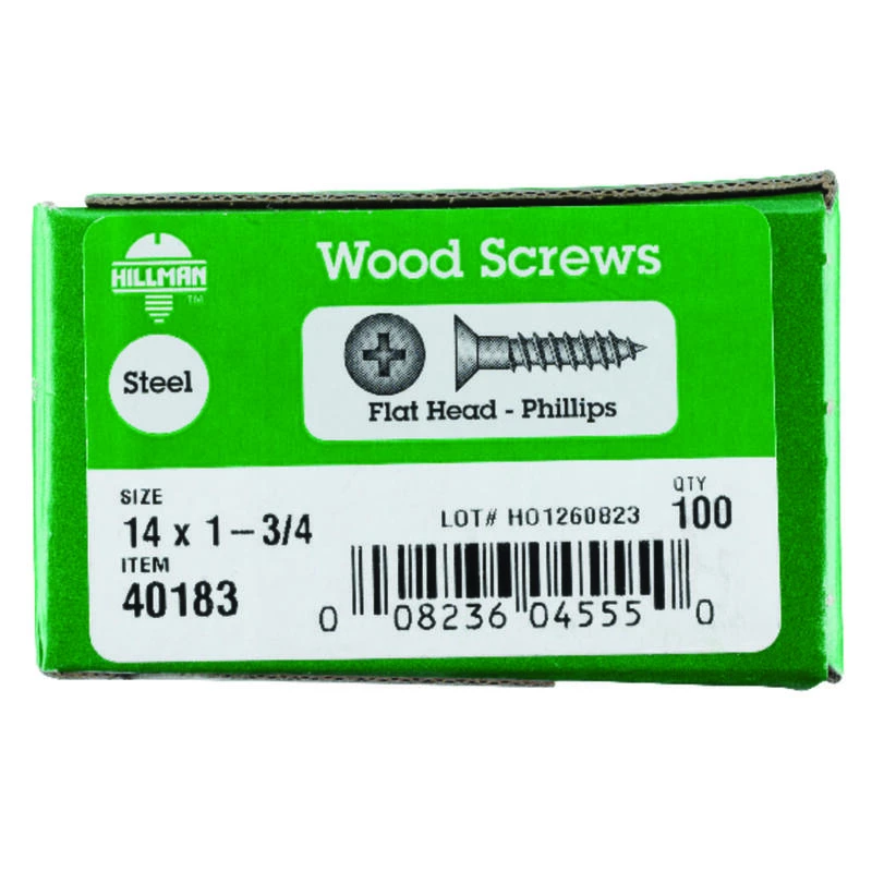 Hillman No. 14 X 1-3/4 in. L Phillips Zinc-Plated Wood Screws 100 pk