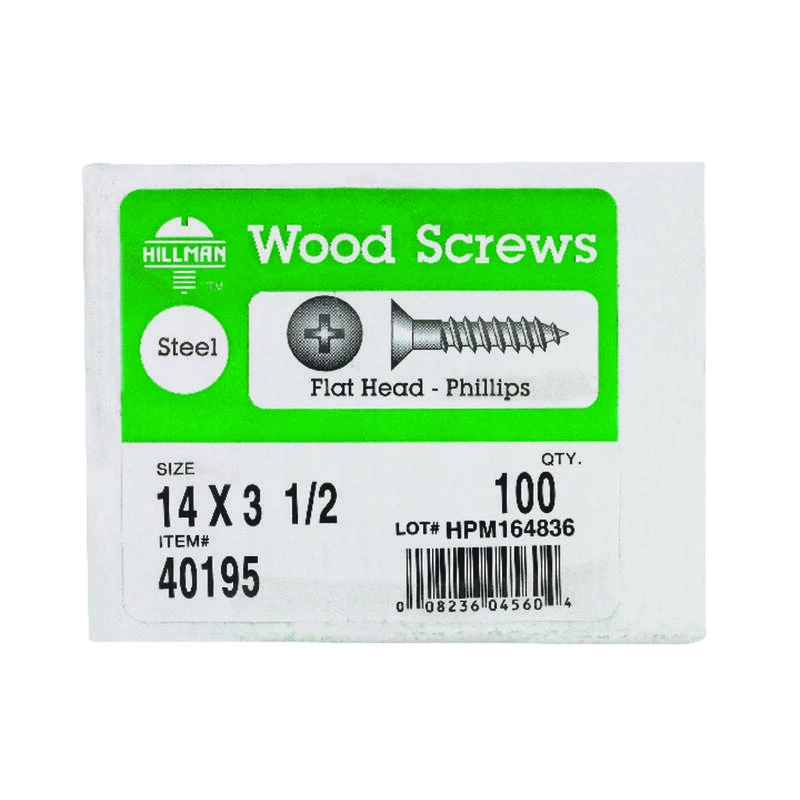 Hillman No. 14 X 3-1/2 in. L Phillips Zinc-Plated Wood Screws 100 pk -Cheap HILLMAN Store a5950bac ae38 45ce a5f6 c22f04903a97
