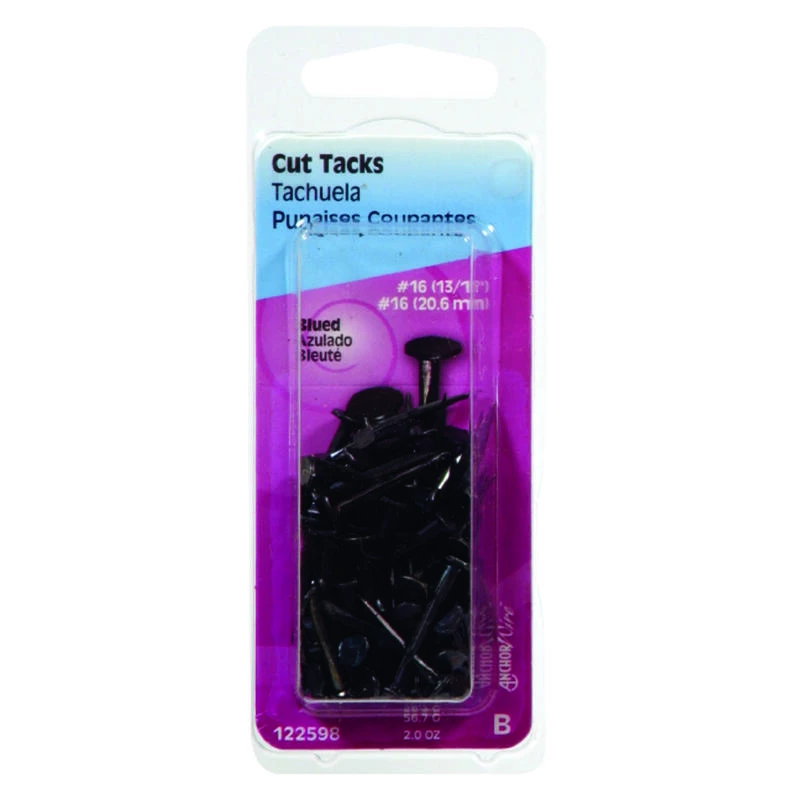 Steel tack with relatively large head and sharp point. Fasten upholstery and carpet or perform other light fastening jobs. Single point design. Blued. A short sharp-pointed nail, with a flat broad head. Ideal for hanging or holding down charts, banners, calendars and much more. Easy to install. *