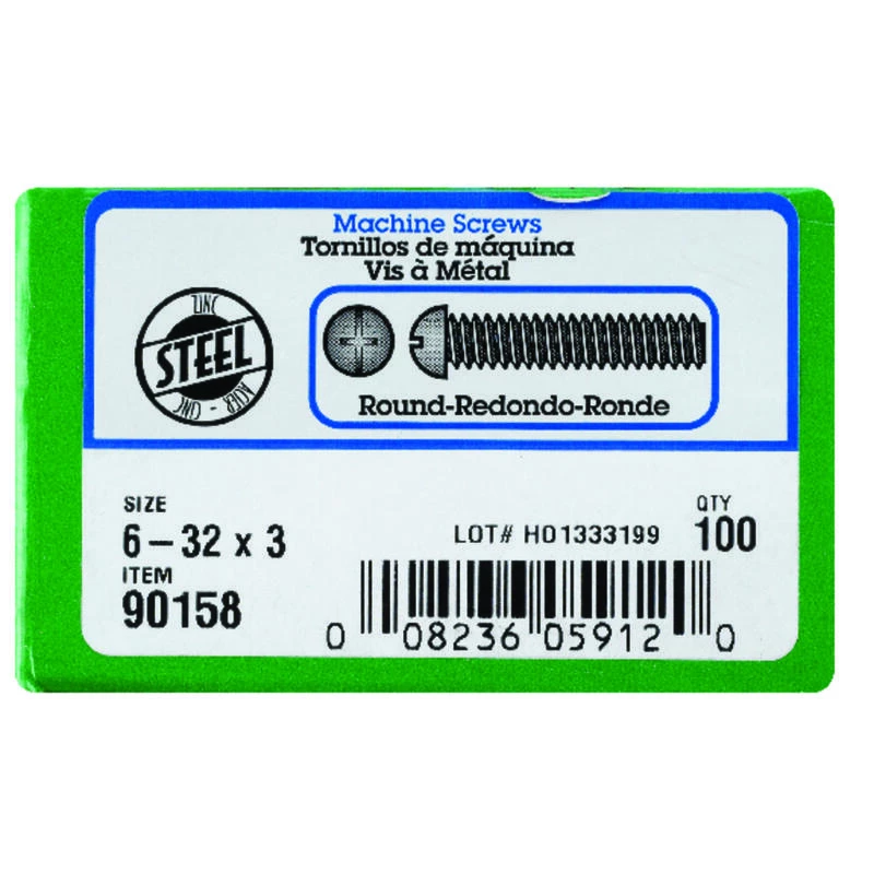 Zinc, round-head, combo-drive machine screws have a machine-cut thread throughout the length of their shank. Fasten with either a Phillips or slot screwdriver to reduce risk of over-tightening and protect the screw and fastened material. If nuts are needed, use with nuts of the same finish and threading for proper fit. Use for any indoor or outdoor projects. #6-32 coarse thread x 3″ length. *