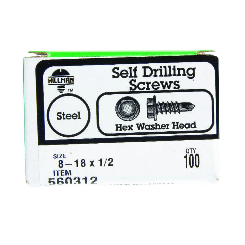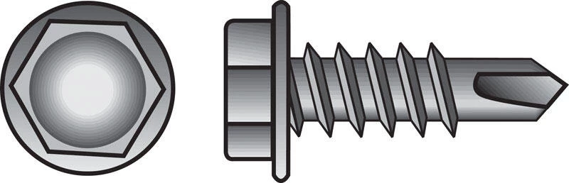This self-drilling screw is used in wood, fiberglass, and metal, and it possess a drill point enabling it to drill its own hole in thin gauge steel. The sharp threads create their own mating thread when drilled into the material. No pre-drilled pilot holes are necessary. *