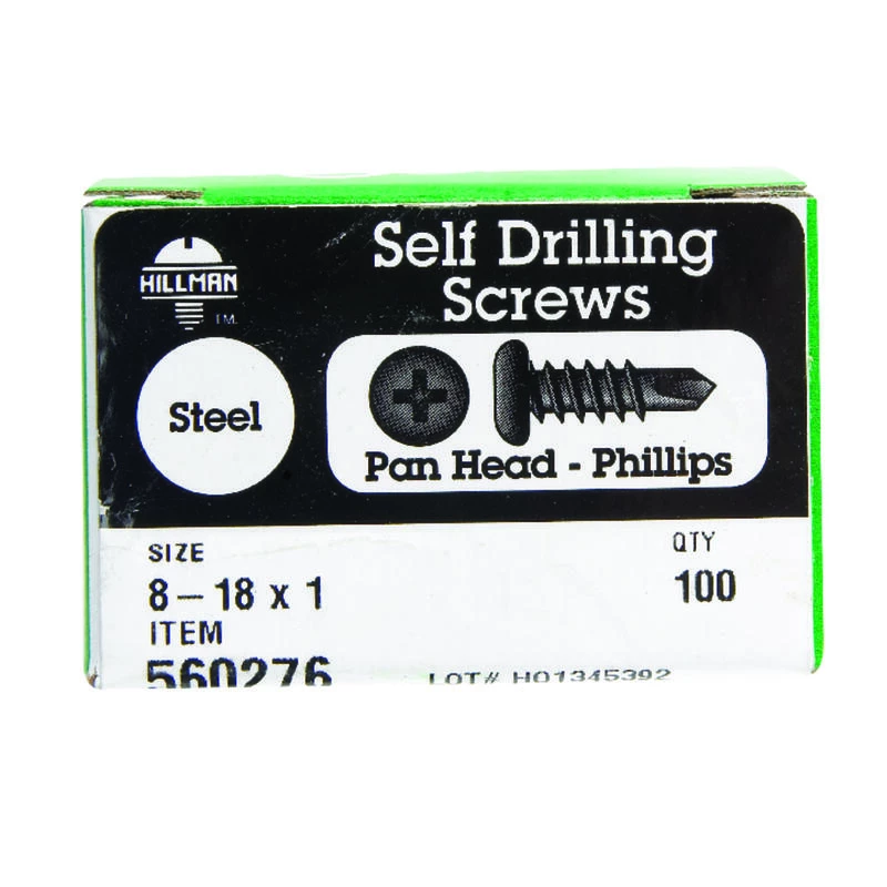 This self-drilling screw is used in wood, fiberglass, and metal, and it possess a drill point enabling it to drill its own hole in thin gauge steel. The sharp threads create their own mating thread when drilled into the material. No pre-drilled pilot holes are necessary. *