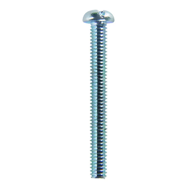 Zinc, round-head, combo-drive machine screws have a machine-cut thread throughout the length of their shank. Fasten with either a Phillips or slot screwdriver to reduce risk of over-tightening and protect the screw and fastened material. If nuts are needed, use with nuts of the same finish and threading for proper fit. Use for any indoor or outdoor projects. #8-32 coarse thread x 1-1/2″ length. *