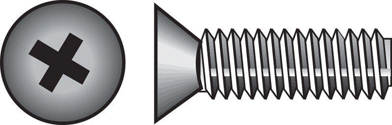 Zinc, flat-head, Phillips-drive machine screws have a machine-cut thread throughout the length of their shank. Fasten with a Phillips screwdriver to reduce risk of over-tightening and protect the screw and fastened material. If nuts are needed, use with nuts of the same finish and threading for proper fit. Use for any indoor or outdoor projects. #8-32 coarse thread x 1/2″ length. *